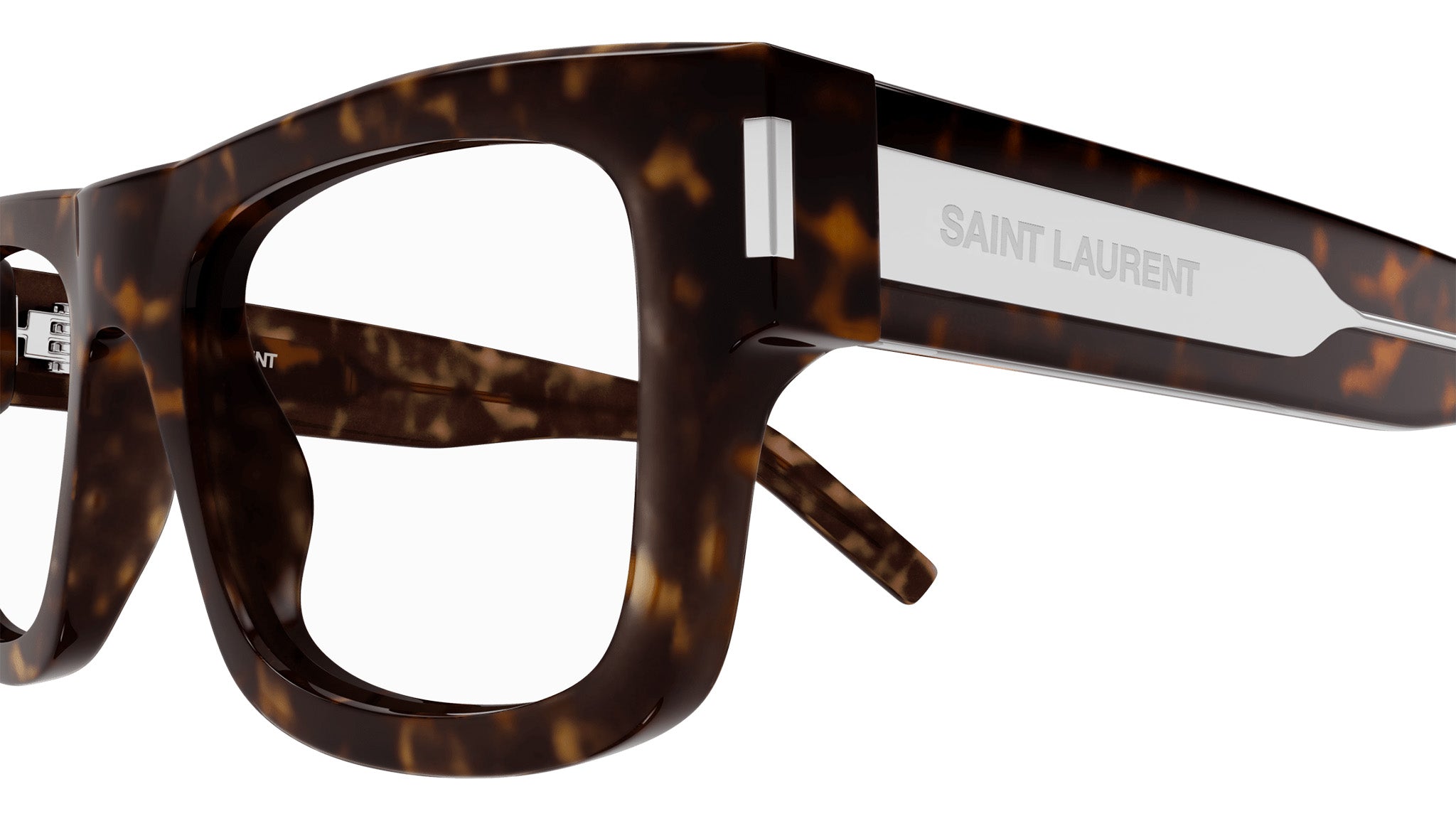 La nuova collezione eyewear Saint Laurent offre modelli esclusivi da sole e da vista e rappresenta pienamente l'attitudine distintiva del marchio verso la moda: stile senza tempo e lusso contemporaneo. L'acetato a spessori diversi, le angolature frontali e i volumi audaci definiscono l'estetica delle montature rettangolari e rotonde, mentre le sagome squadrate e le oversize ampie e avvolgenti esibiscono dettagli sfaccettati e logo inciso, o il logo YSL sulle aste nei modelli in acetato sottile. La silhouette cat-eye, reinterpretata con angolature metalliche e logo laserato, aggiunge un tocco di glamour.  Saint Laurent eyewear è un'esplosione di stile, che unisce  l'eleganza classica a dettagli audaci e moderni.